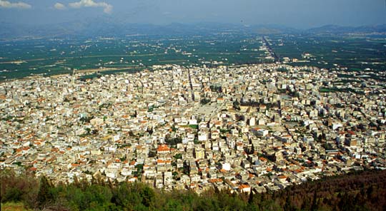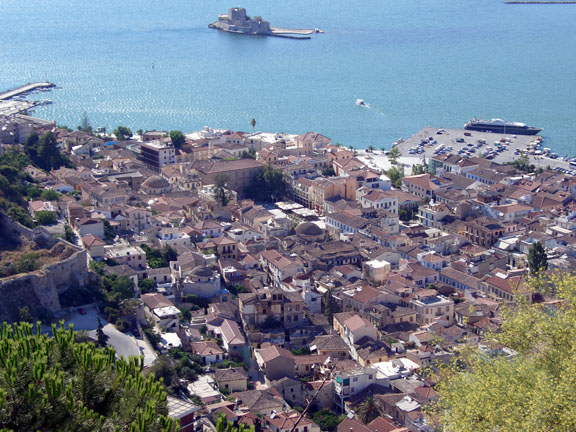 Hauptort (9280 Einw.) des Gebietes Argolís, beherrscht von der Festung Palamidi und von dem Felsen Akronavplia. Schöne neoklassizistische Häuser und sehenswerte Kirchen.
