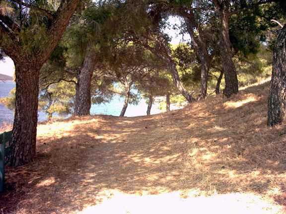 Auf einer mit Kiefern überwachsenen Landzunge lag das antike Ermióni. Auf dem Plateau sind nur noch die Grundmauern sichtbar. Rund um diese Landzunge verläuft ein herrlicher schattiger Wanderweg mit traumhaften Ausblicken und verschwiegenen Badebuchten.