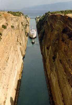 Die Stadt Korinth hat für Touristen eigentlich nicht viel Interessantes zu bieten. Es sei denn, Sie wollen griechische Marktschreier erleben (mittwochs und samstags auf dem Leiki) und die Griechen beim Einkaufen von Obst, Gemüse, Wein, Honig oder Fisch beobachten, was recht unterhaltsam sein kann. Außerdem können wir Ihnen den neu gestalteten Hafen von Korinth empfehlen und die dazugehörigen Cafes. Sehenswerter, ein so genanntes "Muss" ist für jeden Touristen der Kanal von Korinth, die Verbindung des Peloponnes mit dem Festland. Über den Kanal (6,3 km lang, 24 m breit) führen eine Eisenbahnbrücke sowie Autobrücken. Was die Touristen jedoch meistens nicht zu sehen bekommen, sind die versenkbaren Autobrücken an beiden Enden des Kanals. Sobald Schiffe den Kanal passieren wollen, werden diese beiden Brücken für die Überfahrt kurze Zeit gesperrt und im Wasser versenkt.
