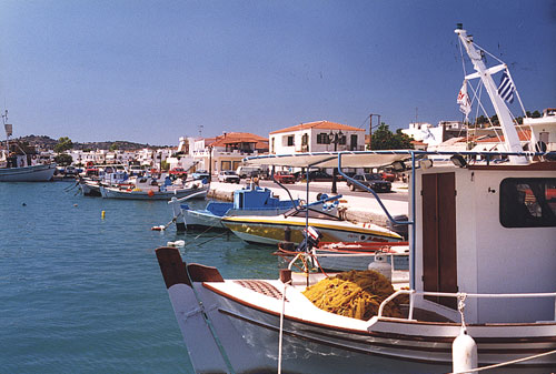 Im Süden des Städtchens, das über einen Hügel erbaut wurde, liegt der Fischerhafen mit einigen Tavernen und Cafés. Ihm gegenüber am Berg steht eine alte Windmühle. Von hier aus kann man einen phantastischen Sonnenuntergang genießen.